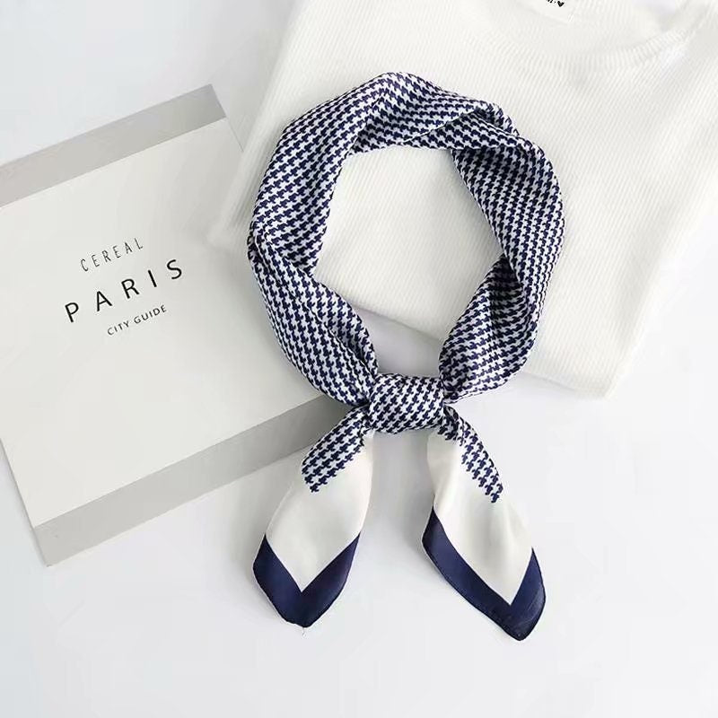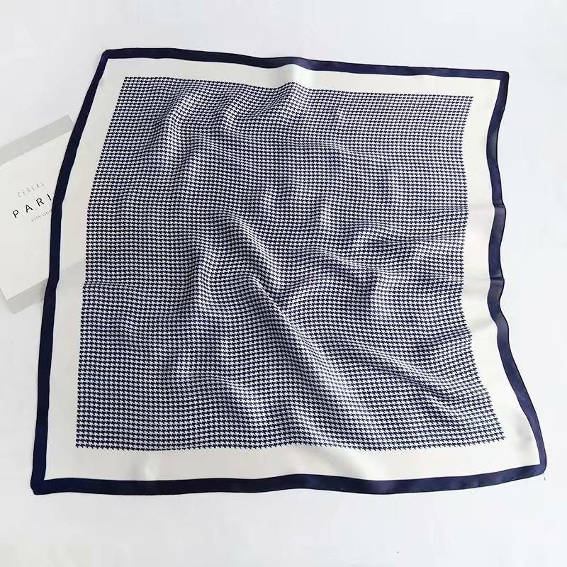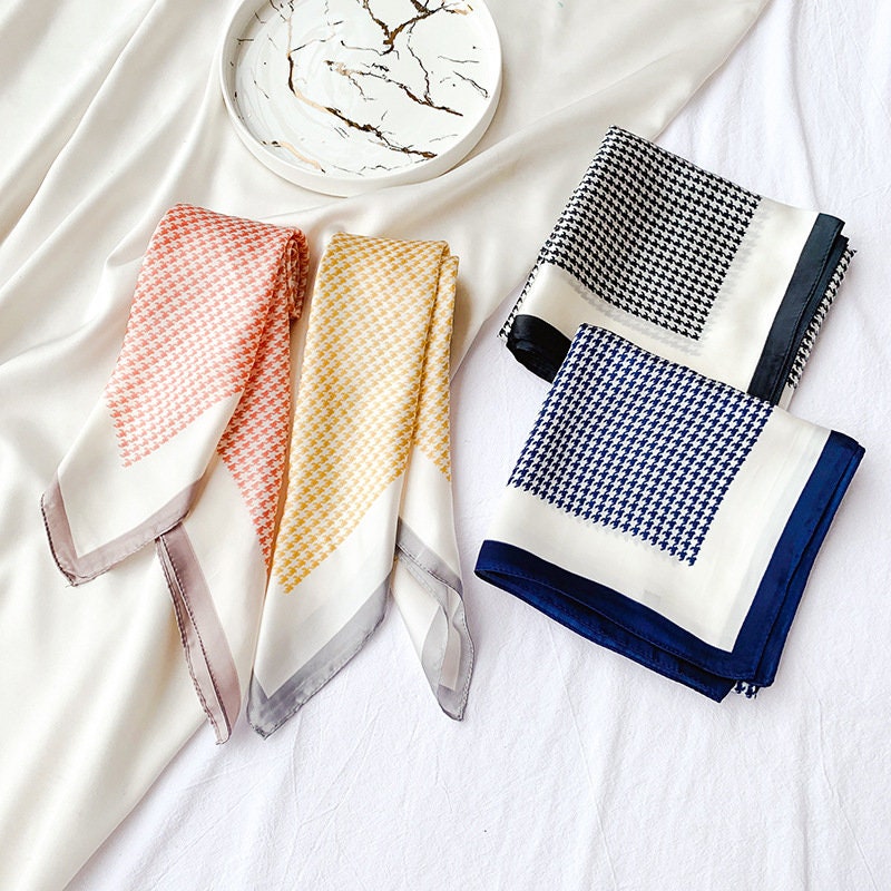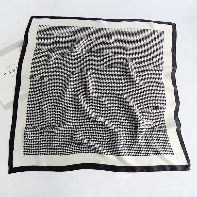 Square Houndstooth Print Silky Satin Scarf, Hair/Head/Neck Scarf 70x70cm